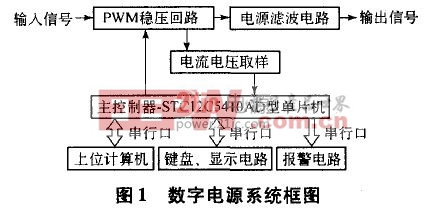 用户不仅能从显示器上观察到当前的电源参数,还可通过键盘随时修改电源参数。单片机通用串行口实现上位计算机与数字电源之间通信。