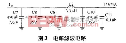 因低R 电容(如钽电容和日本三洋OSCON电容)成本较高,所以,本电源系统降低输出电容R嘞的方法是:在保持输出电容总容量不变的前提下,把原来的一个电容拆分成几个电容的并联,这样,随着电容容量的减少其 EsR相应减少,几个电容并联后,总的尺是单个电容的几分之一;如果选用电容的耐压值适当提高,单个电容的 可进一步降低,这是因为同容量的电容,耐压提高其 咖变小。采用以上设计方法后,输出电容的 大幅度下降,输出电压纹波明显减小。