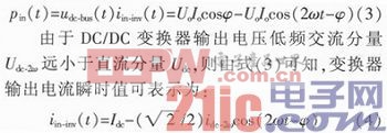 可见,带逆变器负载DC/DC变换器输出电流idc(iin-inv)由直流分量Idc和交流分量idc-2ω组成,频率为2fo。可知DC/DC变换器输出滤波电感电流中也包含直流分量IL与低频交流分量iL两部分。