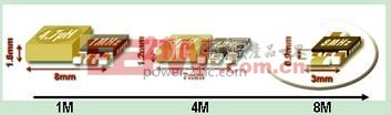 Micrel公司推出了它的第一代“L Free”DC/DC转换器,首款产品是MIC3385。它的开关频率是8MHz,电感集成到3mm x 3mm MLF封装之中。在设计时考虑到降低开关损耗,从而使开关损耗上升导致的效率损失最小。图6所示为MIC3385的简化结构图,图7为实际尺寸。