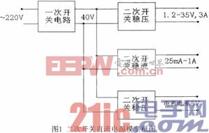220V市电首先用一次开关电路降成40V直流电,这样可以避免工频变压器体积大、重量大、适应市电变化范围小的问题。然后分别用开关稳压电路组成可调稳压电路和可调稳流电路(二次开关),这样可以大幅度地提高电能的利用效率,减少电源自身的功耗。