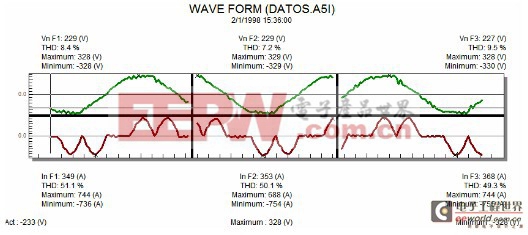 电压骤升对电力系统的影响与电压骤降不同,但结果是类似的。上图所示:带有若干台计算机的线路,反复出现电压骤升的情形。这些反复出现的电压骤升可能导致硬件损坏、死机、异常,而一旦得知是由于电源问题导致的,这些故障都可以迅速排除。
