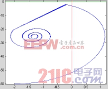 ,即取竖轴为切换面,相平面,运动轨迹分别如图6,图7所示。从图3中很容易看出来该切换面满足前面三个条件,由于只采用了一个状态变量,在实际电路搭建时,整个控制设计得以简化!