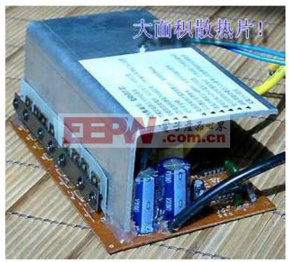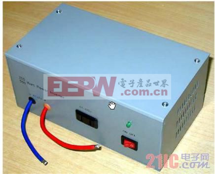 这里介绍的轻型高效率、高频300瓦逆变板,体积只有16x9x7厘米,可以将12伏直流电压逆变成220伏的交流电,可以带动100瓦的负载稳定工作,瞬间允许300瓦峰值功率!正常使用时需要留有一定的余地。图中黄色和黑色(或者是橙色和黑色)的两根6平方毫米的粗线是输入直流电源线,可以接10安时以上的12伏铅酸蓄电池,也可以通过车用点烟插头,可以直接插入汽车的点烟器电源(最好串连一个35A的保险管)。黄线或者橙线接蓄电池正极,黑线接蓄电池负极,两根蓝线输出220伏交流(最好接一个2A的保险管)。这款逆变器效率很高,采用高低频斩波方式,空载电流只有180毫安,整机效率高达85%左右,并且重量较轻,有效地解决了传统逆变器的缺点,是一种较有发展前途的绿色环保产品。
