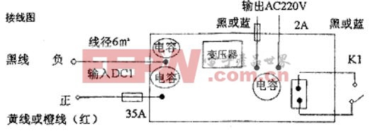逆变器负载必须和市电隔离,接电池连线时,启动开关K1应该处于“O”关闭的位置,而且需要外接35A的蓄电池保险丝,35A保险丝可以用汽车或者摩托车保险代用,普通保险丝内阻大不宜采用,蓄电池端的导线应足够粗,尽量短。两根蓝线输出220伏逆变交流需要接一个2A的保险管,全部连线完成后,可以将启动开关K1打到“1”启动的位置,这时逆变器开始工作。