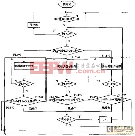 把各离散点的速度所需的装载值用公式转化为各自所需的定时时间固化在系统的ROM 中,这里用TH0=(65536-time)/256,TL0=(65536-time)%256来计算装载值,time表示各阶梯所需定时时间。该程序主要由控制主程序、加减速子程序组成,主程序框图如图4所示。