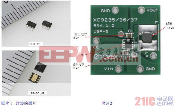 照片l表示封装的大致外观,照片2表示与周围零部件组合的实装电路扳,