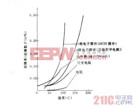 图 1 电子元器件故障率与温度的关系
