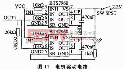 具体做法是利用取平均值的方法将通过上述方法所得的6次转角取平均值,同时利用求得的需要输出角度与上次输出角度的差值,引入一个D环节,经过计算后得到的角度作为实际输出。经过多次实验证明,采用这种方法在直道和S弯道时可以避免频繁的大角度修正,减小系统过冲,使行驶更平稳。采用逐次逼近和PD算法的方法实现智能车转弯控制,降低对模型精确度的要求,更好地满足智能车的容错能力。