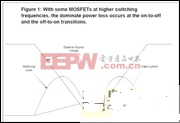 对SMPS的栅极电容充电将消耗一定的功率,断开MOSFET时,这些能量通常被消耗到地上。这样,除了消耗在MOSFET导通电阻的功率外,SMPS的每一开关周期都消耗功率。显然,在给定时间内栅极电容充放电的次数随开关频率而升高,功耗也随之增大。开关频率非常高时,开关损耗会超过MOSFET导通电阻的损耗。