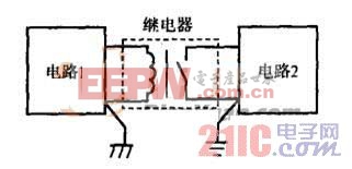 继电器线圈和触点仅有机械联系而没有直接电联系,因此可利用继电器线圈接收信号,而利用其触点发送和传输信号,如图1-11所示,从而实现强电与弱电的隔离。继电器触点较多,且其触点能承受较大的负载电流,因而应用广泛。在实际应用中,常将继电器的线圈接入弱电控制回路,而对应于线圈的触点则用于传递强电回路的某些信号。隔离用的继电器,主要是一般小型电磁继电器或干簧继电器。