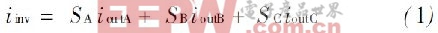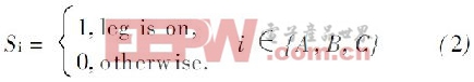式中,SA,SB和SC是交换功能的交换机顶端的三个逆变器的开关,如下:
