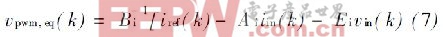 式中,输入电流iin;整流控制电压vpwm;输入电源电压vin都代表参加同步dq参照系数,Ai,Bi和Ei,为系统确定的电路参数。鉴于当前的逆变命令iref(k),DSMC仿真相当于控制式如下: