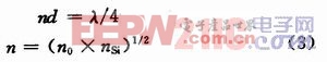 式中:n,n0,nSi分别为外界介质、膜层和硅的折射率;λ入射光的波长;d为膜层的实际厚度;nd膜层的光学厚度。当波长λ0为光的垂直入射时,