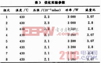 经过实验分析,在温度为430℃,压强为2.1×10-1mbar,功率为3 200 W,流量比为3.07,制备的薄膜具有良好特性,是制作减反射膜的良好的方案。