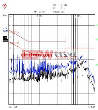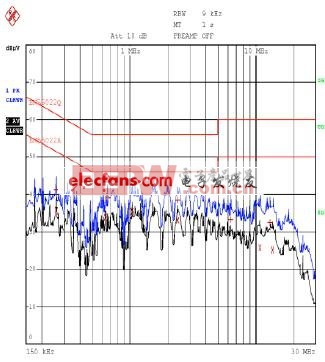 图6a 传导EMI 测试结果(Line) 图6b 传导EMI 测试结果(neutral)