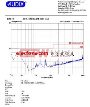 图7a 辐射EMI 测试结果(Vertical) 图7b 辐射EMI 测试结果(Horizontal)