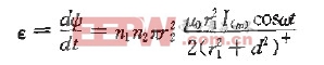 如图4所示,线圈1和线圈2分别位于基座和手机接收模块内,假设给线圈1(匝数为”。)通以I—I……sirl出的电流,则线罔2(匝数为堍)处的磁感应强度可以近似为: