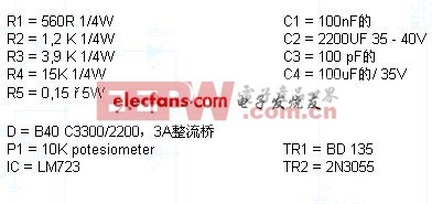 然而,不要太宽的孔,你会发现焊接困难得多导致事后。焊锡的TR1在其位置,并且在散热器上安装的TR2以下图表和确保没有散热器和晶体管之间的电气连接。唐??吨忘记绝缘体,使用晶体管的身体和散热器之间的热转移化合物。使用厚线连接TR2的董事会,最后用一个扁平电缆连接的电位器与电路的其余部分。在其插座中插入电压调节器和电源供应器的准备。现在你的工作的最终检验,以确保不存在错误,可能导致很多麻烦。如果一切OK就可以连接电路的输入(它被标记为“24 VAC »板),变压器的次级绕组。一个电压表连接到标有“V输出3-30引脚和使用一个电源线连接出来让我们方便的电源变压器的初级。如果一切都做得不好,电压表应给予阅读和转动电位器,使其改变。
