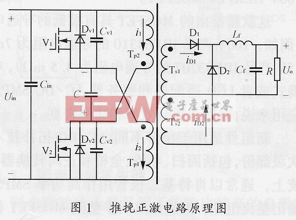2)减小输入滤波器体积与传统的推挽电路相比,推挽正激电路中的箝位电容为开关管关断期间提供一个续流回路。正是由于续流回路的存在使推挽正激电路工作的输入电流纹波的安秒积分较其它拓扑小。因此,可以减小输入滤波器的体积。