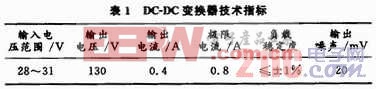 该航天器设备用的隔离式DC—DC变换器的主要技术指标见表1所示。