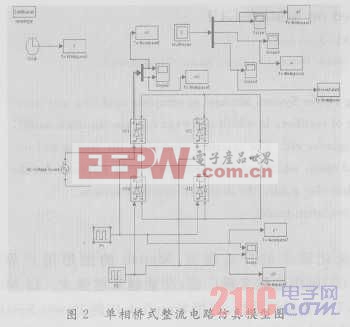 整流电路又称交一直流变流器,在整流的同时还对直流电压电流进行调整,以符合用电设备的要求。按不同的分类方式,整流电路的种类非常多,其中单相桥式全控整流电路和三相桥式全控整流电路最为典型。以单相桥式全控整流电路为例,说明其仿真模型的建立。