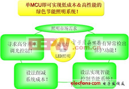 随着照明工业的迅速发展,出现了越来越多的照明控制方案,电源的设计、灯的驱动电路、安全保护、管理接口等各方面都变得愈加灵活。目前,照明技术主要包括主流的荧光灯、LED灯和HID技术等,其广泛应用使电源驱动的拓扑结构差异非常大,从常见的Flyback、Buck、Boost以及延伸出来的其他结构都在被大量使用,产品设计是否采用先进的数字节能控制设计,是否支持flyback、Buck、Boost等灵活的拓扑结构应用,研发周期和投放市场时间的长短将决定产品的成败,然而传统的照明方案往往是采用专用器件来实现的,难以满足快速发展的需求。