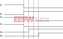 用图6中A相换流到B相为例说明:当负载电流iL>0时,第一步关断S1的负导通部分S1N;第二步开通S2的正导通部分S2P;第三步关断S1的正导通部分S1P;第四步开通S2的负导通部分S2N,这样就完成了两个双向开关之间的换流,其换流波形如图7所示,其中S1和S2为两个双向开关的理想控制信号。可见,四步换流成功地构成了对两个双向开关的换流控制,既禁止了可能使电源发生短路的开关组合,又保证了在任意时刻给负载提供至少一条流通路径。换流过程可用Lattice公司生产的复杂可编程逻辑器件GAL22V10来实现。