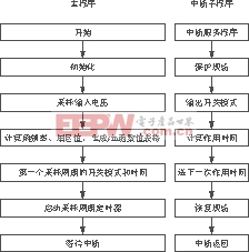 DSP程序中,每100μs产生5个PWM脉冲,系统的采样频率是5kHz,输入电压每200μs采样一次。采用通用定时器1和通用定时器2,通用定时器1周期是100μs用来产生PWM脉冲和GAL的扇区值,通用定时器2周期是200μs用来采样输入电压、计算开关次数,并决定输出线电压和输入电流的扇区值。DSP的程序流程图如图8所示。
