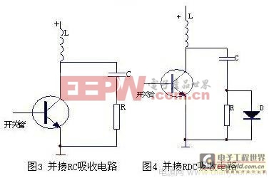 在开关管T 两端加RCD吸收电路,如图4所示。