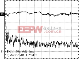 采用Tektronix公司TD340数字示波器,得到仅无源滤波器、无源加有源滤波器时的实验波形,分别如图6及图7所示。由图可以看出,加了有源滤波器以后对消除低次谐波有明显的作用,但是却加大了高次谐波分量,这与仿真结果是一致的。