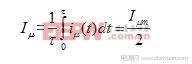 设输入方波的宽度为τ,那么,在输入电压期间,励磁电流iμ 产生的半波平均功率Pμ 为: