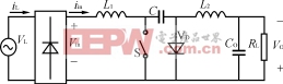随着半导体器件的发展,电力电子装置的大量应用,导致大量谐波电流涌入电网,污染电网,这一问题已引起了各国的重视。为了限制总的谐波含量(THD)以提高功率因数,制定了许多标准,如IEC100032。近年来,如何提高功率因数成为了电力电子领域研究的热点,提出了许多有源PFC电路[1]~[3]。有两种功率因数校正方案,其一是采用控制输入电流使其接近正弦,这种方案中电路工作在连续导电模式(CCM),通常要求双闭环控制,由于对输入电流、电压及输出电压取样,这种方案比较复杂,成本高,限制了该方法的使用[4]~[5]。另一种方案是采用电压跟随(VoltageFollower)方式[6],电路通常工作在不连续导电模式(DCM),开关由输出电压误差信号控制,这种PFC方案仅需要一个电压控制环,这种方案相对简单,引起了研究人员的广泛关注[6]~[8]。