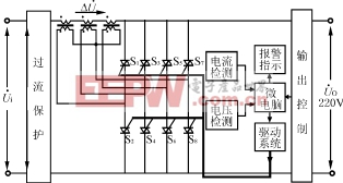 稳压器主要由主电路、单片机、检测电路、控制电路、驱动及报警接口电路等单元构成。如图1所示。