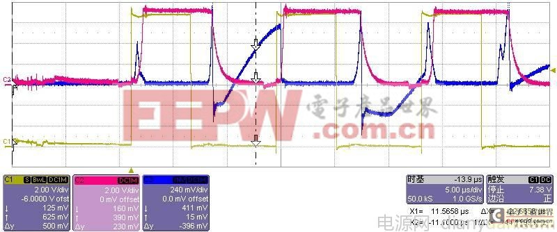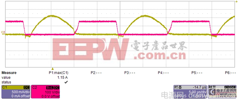 这个波形是在最低的线电压,而且在纹波的波谷抓的!所以变形得厉害,我们可以理解为,在这样的线电压条件下,这种波形可以接受的!