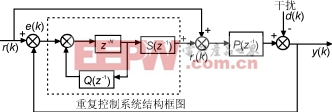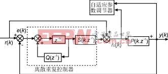 重复控制系统。自适应参数调节器从本质上讲是一种算法,它使系统具有自适应能力,能根据实际的系统特性调整控制参数,以达到所期望的性能指标。在本系统中,自适应参数调节器利用递推最小二乘算法(RLSE),实时辨识系统受控对象的结构参数,从而依据期望的性能指标对离散重复控制器的参数进行调节。
