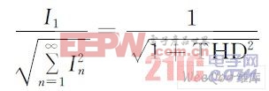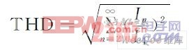 式中,I1表示交流输入基波电流有效值;Irms表示输入电流的有效值;定义γ=I1/Irms为交流输入电流的失真系数;cosφ 表示交流输入的基波电压和基波电流的相移因数。所以功率因数PF 可以定义为交流输入电流的失真系数γ与相移因数cosφ 的乘积。同时,总谐波失真: