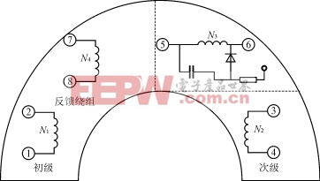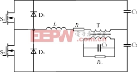开关级电路原理图如图6所示。这里开关级的负载是高频高压变压器,它的输入特性与负载的特性有关。在高压小功率应用中,由于输出电流小,负载电阻大,次级整流二极管的导通角很小。为便于建立仿真模型。可忽略负载电阻的影响。