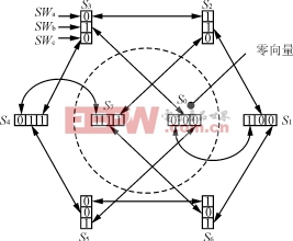 为实现优化模式2的开关动作,可利用TMS320LF2407A内部极大简化的电压空间矢量PWM波形产生硬件电路,即软件结合集成硬件的混合波形生成法。在软件中只要对相应的控制寄存器进行设置即可。必须添加的步骤如下:设置COMCONA寄存器使DSP工作于空间矢量PWM模式;查表并将每个控制周期中初始向量(UX)的开启方式写入到ACTRA.14~12位中,如U1的写入值为(100);将“1”(“1”表示参考向量Uref为顺时针旋转,“0”表示Uref为逆时针旋转)写入ACTRA.15中;最后将T1/2写入到CMPR1寄存器,将(T1+T2)/2写入到CMPR2寄存器。这样,空间矢量PWM波形产生硬件电路将根据初始向量和参考向量的旋转方向,自动选择模式2所示的优化开关组合。