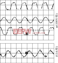 图10及图11为在TMS320LF2407A最小控制系统下的实验波形,可见与仿真波形相似。实验样机设计输出功率为2000V·A,输入是220V,50Hz单相交流电,输出为可在0到1000Hz连续变化的三相交流电。由于IR2130自带2μs的死区,使得模式2的PWM波形不再具有对称性,这导致了实验中输出相电压马鞍波形畸变得更大些。但从线电压,线电流上看,两种方法所输出的波形均具有很高的正弦性。