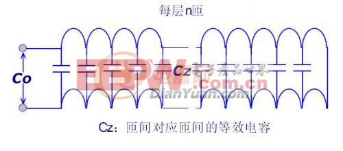 由图可见,基本上所有变压器都存在由两层之间的对应匝的电容并联而成的静态层间电容 Co,