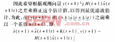 设待预测的第(t+1)天时刻负荷的卡尔曼滤波预测值为yk(t+1|t),该时刻的状态估计值为LTK(t+1|t),,而该预测时刻的气温预报值为Tk。状态估计值是卡尔曼滤波器通过历史负荷得到的对系统下一个时刻的状态的最佳估计,而预报获得的系统的新的状态值则反映了系统的未来状态,因此他们的组合能够让预测模型获得更多的信息,从而得到更加准确的预测值。为利用此信息,可以对预测得到的值进行修正,即在[Tk-LTK(t+1|t)]前乘以一个修正系数,即: