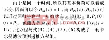 每一次递推运算中,要先求出预测值xk(t+1|t),然后根据预测值计算出预测误差的方差Pk(t+1|t),由最佳滤波规则计算卡尔曼增益Kk(t+1),经过卡尔曼增益的误差补偿后获得最佳滤波值xk(t+1),再由预测方程计算负荷预测值。