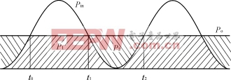 结构的效率都较低。为了提高变换器的效率,人们提出了并联PFC方法。其基本思路如下:假设PF=1,PFC输入功率与输出功率关系如图4所示,平均输入功率Pin的68%(P1)经过一次功率变换到达负载,32%的剩余功率(P2)为输入与输出功率在半个电网周期内的差,经过两次功率变换到达负载[1]。图5为该方法的功率流图,P2经过两次功率变换到达输出,其余部分P1经过一次功率变换达到输出,从而提高了电路效率,并且高于两级和串联单级变换器。