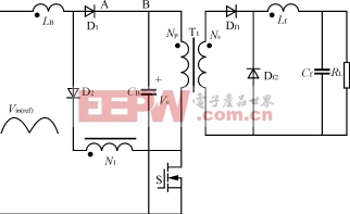 它的主要优点是结构简单、效率高、储能电容电压被箝位,电压值的大小等于输入电压的峰值,对功率开关管没有产生附加的电压应力。另外,在S开通时,由T1直接传递大部分能量到负载,降低了开关管的电流应力,提高了变换器的效率。它的主要缺点是元件数目多,成本较高。