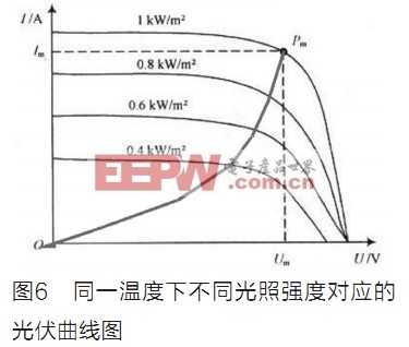 影响最大, 图6是同一温度下不同光照强度对应的光伏曲线图。