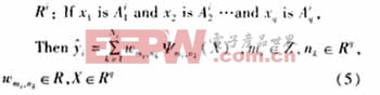 其中,Ri表示第i(1≤i≤c)条模糊规则;Xj(1≤j≤q)为输入集X中的第个变量;Ni表示第i条模糊规则中选用的小波基总数;nk=[n1k,n2k,...,nqk]为平移因子;而