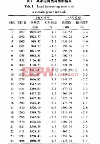 为了验证方法的可行性和有效性,本文以某市电力系统实际历史负荷为例,用上述FWN模型进行短期负荷预测仿真。