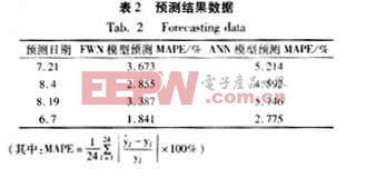 从预测结果我们可以看出,基于模糊小波网络的负荷预测精度得到显著提高,同时也证明这种方法是完全可行的。从表1中还可以发现模糊小波网络的预测相对误差变化很均匀,表明其泛化能力比神经网络大有提高。从表2中可以看出模糊小波网络能够更好地拟合负荷与天气因素之间的密切关系,进行更加可靠的预测。