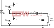 2.4 模型的验证 图2使用一个简单电路验证一下灯模型,拓扑仅由一个CLASS-D逆变器构成。参数为Ls=1.56mH,Cr=5.6nF,fs=45kHz,D=0.45。 图2 CLASS D型 逆 变 器 电 路 拓 扑 从图3中可以明显地看出,在整个调光范围内灯电压几乎不变,灯电流随着频率的增加而逐渐降低。当fs接近75kHz时,灯电流急剧下降,继续增大频率,灯将会熄灭。由此说明此模型能够很好地反映灯特性。 (a) f=45kHz,D=0.45 (b) f=70kHz,D=0.45 (c) f=75kHz,D=0.45 图3不 同 频 率 下 灯 电 压 、 灯 电 流 仿 真 波 形 3 设计与验证 3.1 主电路拓扑 主电路拓扑结构如图4所示。 电子镇流器的主电路由PFC电路和谐振电路两部分组成。考虑到两级结构的成本过高,因此将两级中的功率开关管共用变成单级结构。图4所示主电路拓扑就是将Buck-Boost型PFC电路与并联负载串联谐振电路合成在一起,灯模型采用前面所提到的模型。 图4 调 光 式 荧 光 灯 电 子 镇 流 器 主 电 路 拓 扑 3.2 理论设计 对于上述拓扑,功率因数校正级电感Lo是和频率有关的量,那么调光时,随着频率的升高,电感电流可能要连续,这样会影响功率因数校正的效果,灯上电压、电流也会发生畸变,从而限制了调光范围。因此,它的参数选择至关重要[3]。首先,由于电感电流工作于DCM状态,电感电流的峰值iin(peak)(t)正比于线电压,所以它在半个工频周期(T/2)内为 iin(peak)(t)= (0t 式中:VI为电网电压的幅值; ω(=2π/T)为电网电压的角频率; fs为开关频率,它大大高于电网电压频率; D为开关的占空比。 而电感电流的平均值iin(m)(t)为 iin(m)(t)= 从上式可以看出电感电流的峰值是呈正弦变化的,因此能实现功率因数校正。假设Buck-Boost变换器的效率是100%,功率因数是“1”,一个工频周期内输入功率因数校正级的平均功率为Pi为 Pi= 式(3)表明输入功率Pi在Lo恒定的情况下可以通过改变占空比和频率来控制,如果输入功率等于灯驱动级的功率,电压Vco能够保持恒定。相反,如果输入功率大于灯吸收的功率,则Vco将无限制地增长,造成器件损坏。 所以,应尽量使两者相等,而输出到灯上的功率Po为 Po= 式中:Vo为灯管两端电压; Rlamp为灯管等效电阻。 为了保证电感电流工作在DCM状态,占空比D必须满足以下条件 Lo= 式中:Pof1,Df1,fsf1分别表示满载时输出功率,占空比和开关频率。保证了整个调光范围内电感电流断续,即功率因数始终为“1”。 选择开关频率fs为45kHz,为了给DCM工作状态留一个裕量,选择D=0.45。功率因数校正极电感Lo=3.37mH。并联负载串联谐振网络参数采用基波近似法得到,参数如下:Cs=1μF,Ls=1.41mH,Cr=5.6nF,模型依然采用前面提及的灯模型。调频调光时直流母线电压、灯电压、灯电流波形如图5所示。 (a) f=45kHz,D=0.45 (b) f=75kHz,D=0.45 图5 提出的单级电子镇流器不同频率下直流母线电压、灯电压、灯电流仿真波形 由图5的仿真波形可以看出,所提出的电路拓扑及参数能够达到设计要求。当频率从45kHz提高到75kHz时,灯功率可以从140%(46W)下降到1%(0.29W)。因此,设计的电路调光范围很宽,调光范围是一项非常重要的性能指标。 调光电子镇流器的频率与功率之间的关系如图6所示。当fs=75kHz时输入电流依然能够跟随输入电压,达到功率因数为“1”。其波形如图7所示。 图6 32W荧 光 灯 调 频 法 调 光 曲 线 图7 输 入 电 压 电 流 波 形 4 结语 应用荧光灯PSPICE动态模型可以方便地设计出一个可调光的电子镇流器,设计者可以采用更少的假设做更深入的研究。对所选拓扑其调光范围可达到满功率的1%,调光范围较宽,其功率因数达到“1”,波峰因数在整个调光范围内始终小于1.7。